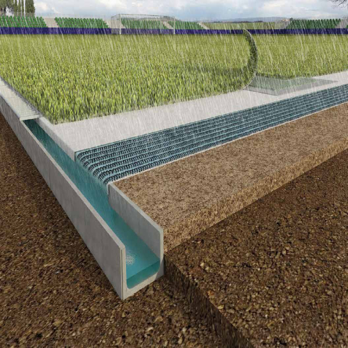 High-performance, fibre-reinforced powdered stabilising agent for sports sub-base construction surfaces..
